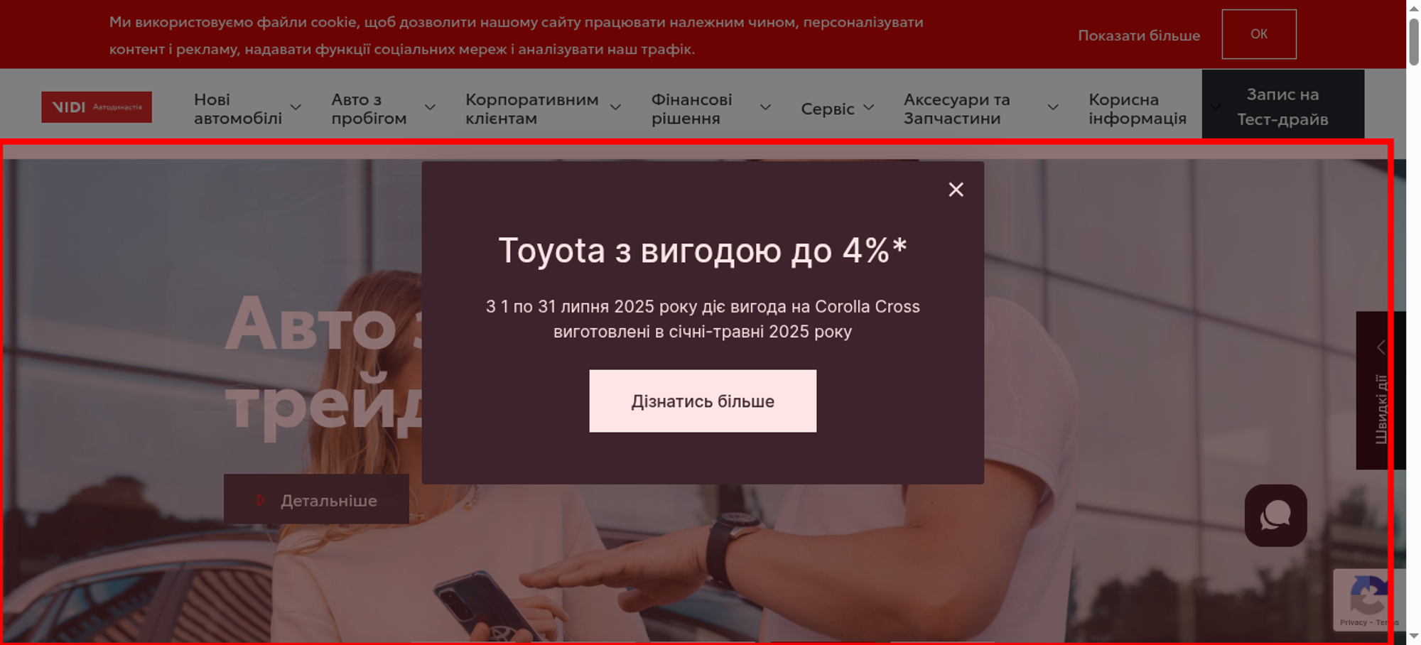 | Offenders: https://toyota-odessa.com.ua/assets/a812a349/css/config.css?v=1596552694 https://toyota-odessa.com.ua/css/index.min.css?v=1753343426 https://toyota-odessa.com.ua/uploads/5/26200-vidi_red_ukr_3.svg https://toyota-odessa.com.ua/icon/icon-steering-wheel.svg https://toyota-odessa.com.ua/icon/icon-engine.svg https://toyota-odessa.com.ua/icon/icon-model.svg https://toyota-odessa.com.ua/icon/icon-file.svg https://www.google.com/recaptcha/api.js?render=6Lf9DLkpAAAAAFKec1Zi4vyO95rh7f1nTFdvaf6B https://toyota-odessa.com.ua/assets/8fa4c072/yii.js?v=1600120330 https://toyota-odessa.com.ua/assets/a812a349/js/config.js?v=1596552694 https://toyota-odessa.com.ua/assets/639e0076/jquery.pjax.js?v=1507803074 https://toyota-odessa.com.ua/assets/8fa4c072/yii.activeForm.js?v=1600120330 https://www.googletagmanager.com/gtag/js?id=G-EB51PW0SZK https://toyota-odessa.com.ua/images-webp/440_200_8b90da4b-90d5-42c4-8dbb-d020bacab3af.webp https://toyota-odessa.com.ua/images-webp/440_200_23417e0d-5542-4d52-b0d7-5cf16e3ace06.webp https://toyota-odessa.com.ua/images-webp/440_200_3ecccad7-56c6-4600-8874-f6c174743941.webp https://toyota-odessa.com.ua/images-webp/440_200_beafaaab-b959-4e53-a77c-f616d15c9cee.webp https://toyota-odessa.com.ua/images-webp/440_200_269238e4-4a7c-45fd-a20c-36bf7e1aa3c8.webp https://toyota-odessa.com.ua/images-webp/440_200_8d332c30-bd35-4bb5-a325-c5a39a220337.webp https://toyota-odessa.com.ua/images-webp/440_200_5028e61e-73a8-446e-b19e-1fa929399003.webp https://toyota-odessa.com.ua/images-webp/440_200_e3627276-4db3-42f3-afa4-83b2551025d0.webp https://toyota-odessa.com.ua/images-webp/440_200_32e8bab1-c804-45e5-8192-b4039b4daff0.webp https://toyota-odessa.com.ua/images-webp/440_200_4bb0ac0c-ea60-463b-81a3-7614d2369bb8.webp https://toyota-odessa.com.ua/images-webp/440_200_ea8cbd10-d33b-42a8-b10b-2113f4c169e7.webp https://toyota-odessa.com.ua/images-webp/440_200_6ad2a083-6c7a-43ed-9630-77a9223f99b1.webp https://toyota-odessa.com.ua/images-webp/440_200_31f1d60a-015c-4a2b-972f-8a5341b54304.webp https://toyota-odessa.com.ua/images-webp/440_200_8c0d58c4-d229-4c7c-8c48-cbdfd63a99b8.webp https://toyota-odessa.com.ua/images-webp/440_200_5983f9f3-cb13-4837-bda1-c836bc8d5d6b.webp https://toyota-odessa.com.ua/uploads/thumb/37566-1-v_naavnosti_3.webp https://toyota-odessa.com.ua/uploads/thumb/36737-1-v_naavnosti_2.webp https://toyota-odessa.com.ua/uploads/thumb/37740-1-v_naavnosti_4.webp https://toyota-odessa.com.ua/uploads/thumb/31484-1-camry_sira_2.webp https://toyota-odessa.com.ua/uploads/thumb/37757-1-v_naavnosti_5.webp https://toyota-odessa.com.ua/uploads/thumb/36918-1-rav4_v_naavnosti_1.webp https://toyota-odessa.com.ua/svg/header_logo.svg https://toyota-odessa.com.ua/js/index.min.js?v=1747145045 https://toyota-odessa.com.ua/fonts/toyota_rg.woff2 https://toyota-odessa.com.ua/uploads/5/28459-spetsialna_sina.jpg https://toyota-odessa.com.ua/uploads/5/28850-novyna_camry.jpg https://toyota-odessa.com.ua/uploads/7/36728-intro1_1.jpg https://toyota-odessa.com.ua/uploads/7/35218-trejdin.jpg https://toyota-odessa.com.ua/uploads/5/28851-zapys_na_servis_toyota_online.jpg https://toyota-odessa.com.ua/svg/arrow_right.svg https://www.googletagmanager.com/gtm.js?id=GTM-TQJF8HR3 https://toyota-odessa.com.ua/fonts/toyota_bd.woff2 https://toyota-odessa.com.ua/img/check.svg https://www.googletagmanager.com/gtag/js...nager.com/gtag/js https://www.youtube.com/iframe_api https://toyota-odessa.com.ua/svg/pin.svg https://www.facebook.com/privacy_sandbox/topics/registration/?id=182457287985309 https://www.facebook.com/privacy_sandbox/pixel/register/trigger/...register/trigger/ https://vidipalmira.helpcrunch.com/api/v2/applications/766332c1-6a66-4ba6-9086-7f39fa4a6a3a |